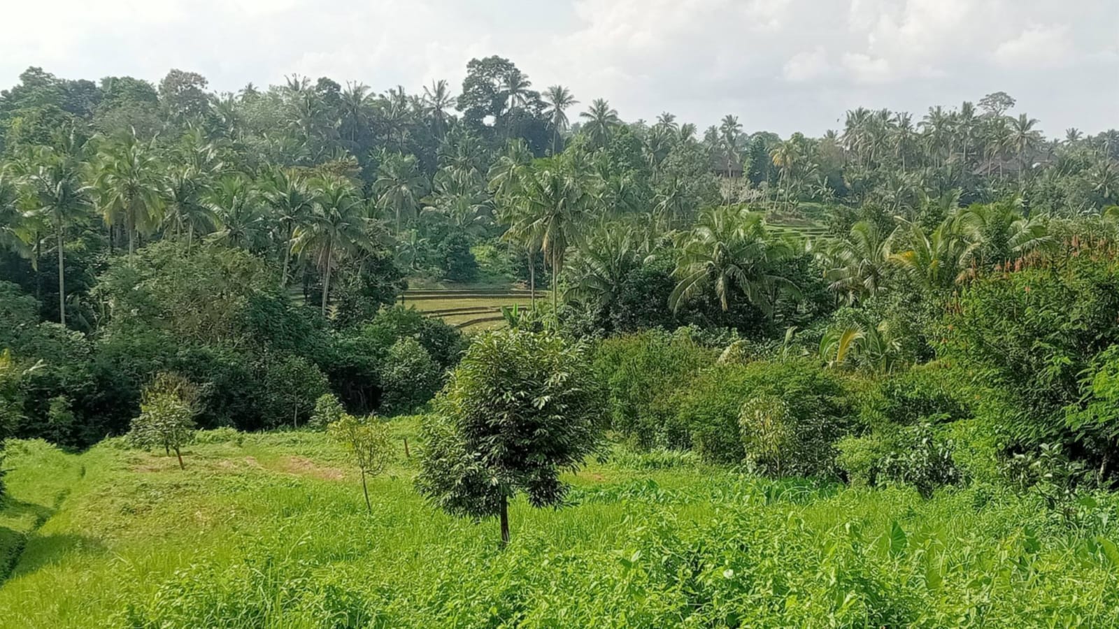 Lahan ini berada di kawasan Desa Tiyinggading, wilayah Tabanan, dengan karakter kebun produktif yang telah ditanami durian varietas Musang King dan Ochee